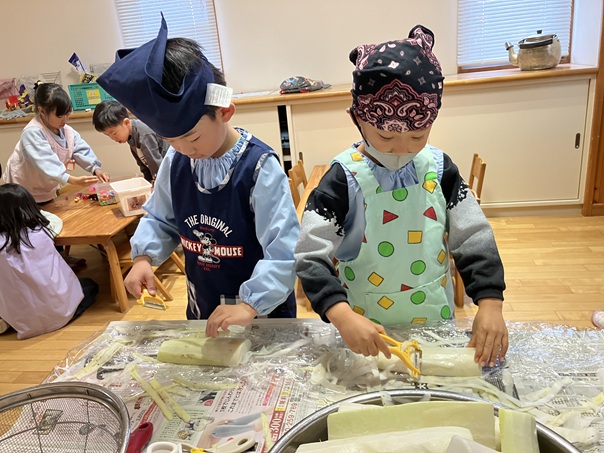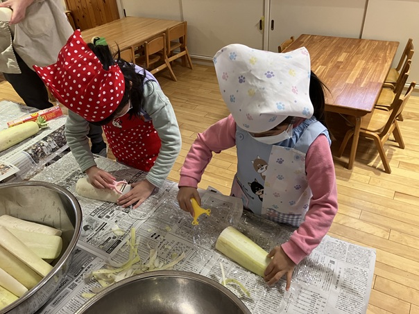 皮をむいただいこんは、おやつのだいこんもちに変身!