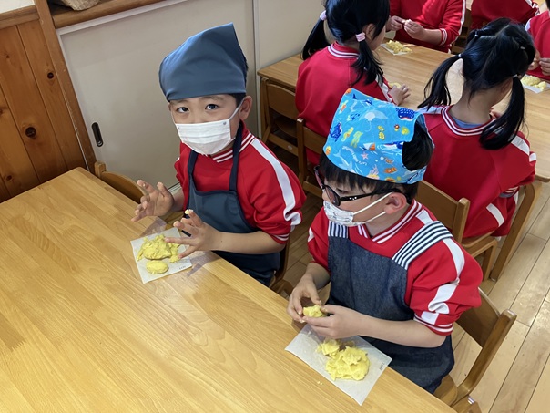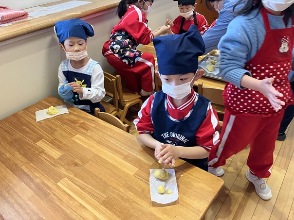 今日は、出来上がったスイートポテト生地を好きな形にしました。