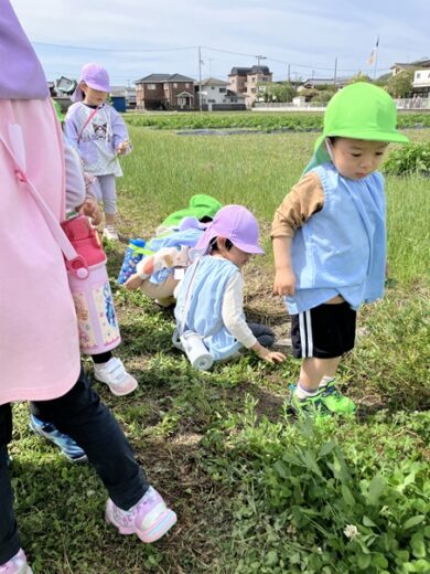 たんぽぽ組さんと一緒に畦道へ春探しのお散歩に行きました🌸